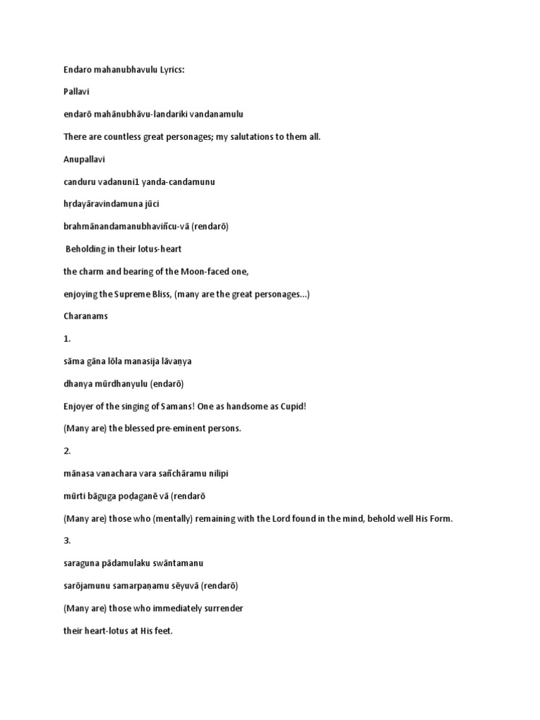 Entharo Mahanu Bhavulu Lyrics Translation / Now we recommend you to download first result endaro mahanubhavulu tyagaraju keerthana mp3. Entharo Mahanu Bhavulu Lyrics Translation / Video entharo mahanubhavulu.wmv kanala rajesh menon.